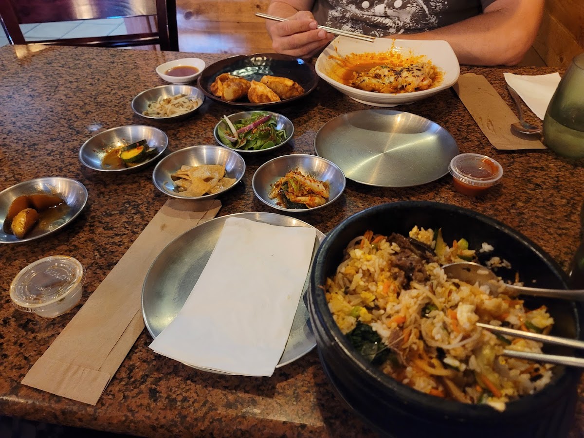 The meal was lovely, being solo I did not eat at a grill table, so I did not cook my own meat like those around me. The wine pork belly was excellent, and the numerous sides just made my day...I had to limit my rice intake to make sure I could properly enjoy them all. Service was friendly and attentive, I even got a few pointers that might allow me to convince my wife to let me pickle daikon at home again someday. From the outside the restaurant seems unassuming, inside the vibe is pretty decent, from the menu, extensive soju selection, or K-Pop videos on TV...overall quite enjoyable. The Entree prices are not cheap, but the food was quality and theu continued to offer refills for the sides, which honestly were some of my favorite part, especially the kimchi and picked daikon.